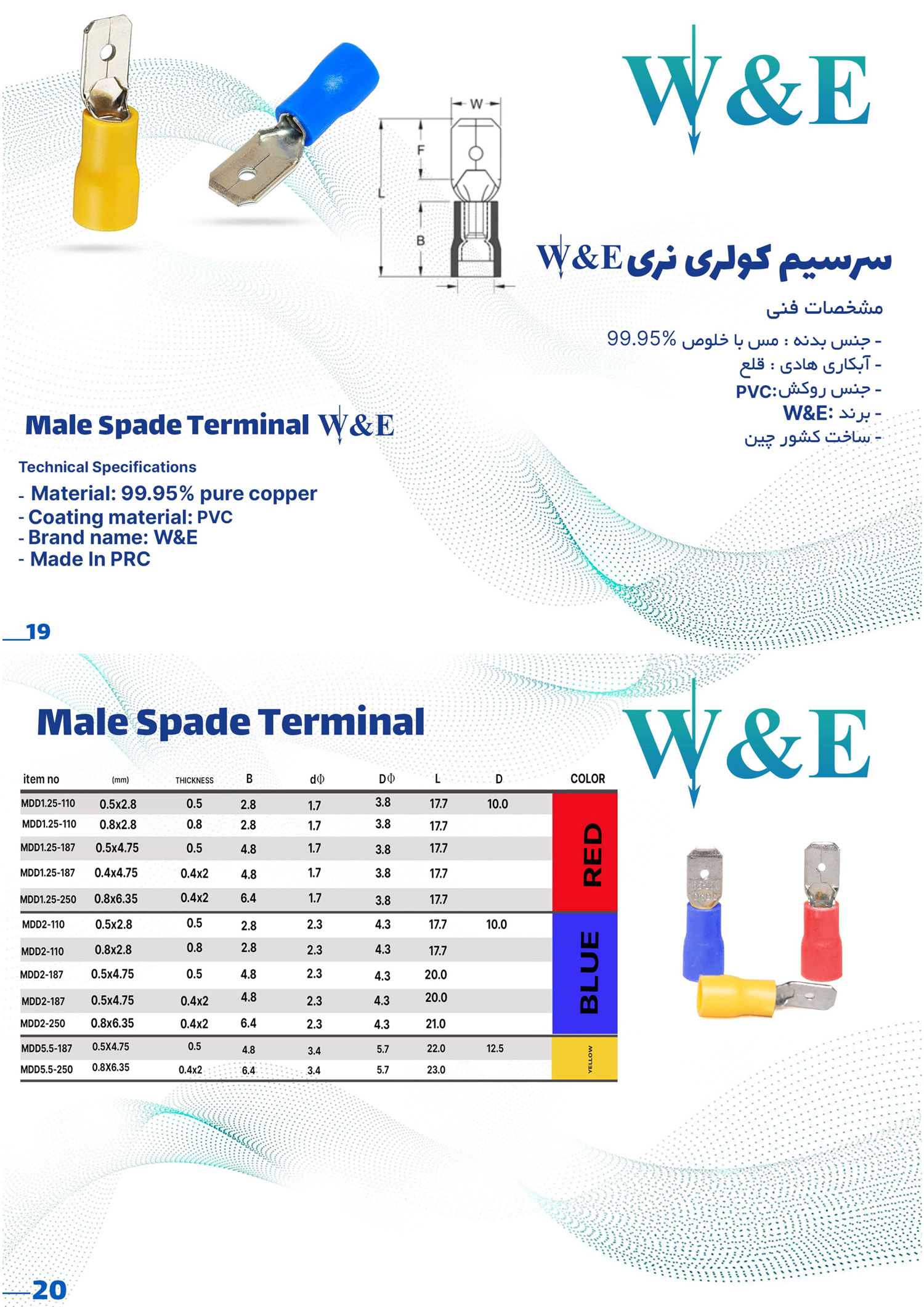 سرسیم کولری مدل MDD 2-250 برند W&E از نوع سرسیم کولری نری روکشدار با قابلیت اتصال حداکثر سیم ورودی 2.5 میلیمتر مربع است. و رنگ روکش آن آبی می باشد.