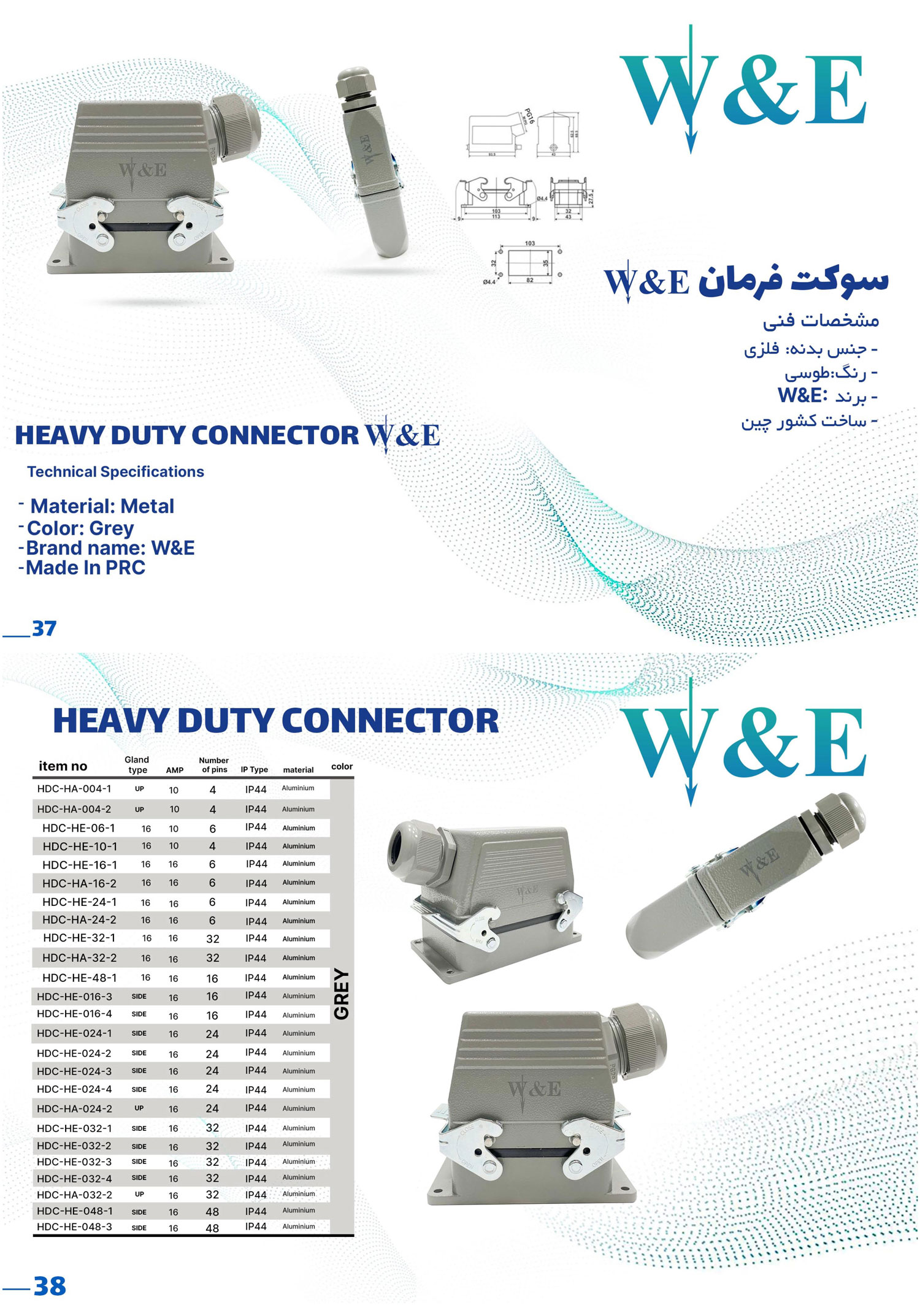سوکت‌های فرمان برند W and E با تعداد پین‌های مختلف ۴، ۶، ۱۰، ۱۶، ۲۴، ۳۲ و ۴۸ پین تولید می‌شوند تا پاسخگوی نیازهای متفاوت در مدارهای فرمان، رله‌های صنعتی، کنترل پنل‌ها و سیستم‌های اتوماسیون باشند. تنها اختلاف مدل‌ها در تعداد پین و جریان نامی آن‌هاست و از نظر کیفیت ساخت، نوع بدنه، مقاومت حرارتی و استاندارد حفاظتی، همگی در یک سطح قرار دارند.